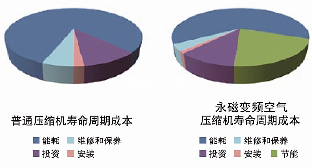 永磁變頻空壓機(jī)可以精確的滿足用戶的空氣需求。當(dāng)用戶的用氣量降低時(shí),排氣量相應(yīng)地減少,同時(shí)能耗也按比例下降。通過(guò)先進(jìn)的變頻技術(shù),大大的減少了空壓機(jī)的卸載,使能耗大大下降。永磁變頻空壓機(jī)可跟蹤空氣需求量的變化自動(dòng)調(diào)節(jié)電機(jī)轉(zhuǎn)速,平均節(jié)能可達(dá)50%。